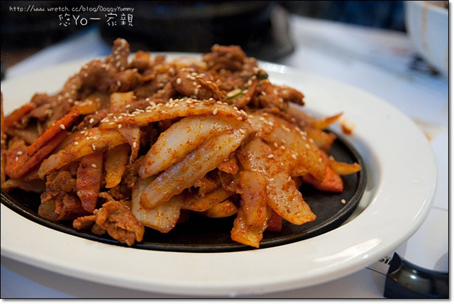 紅通通的炒雞肉有道地的韓式辣味口感~