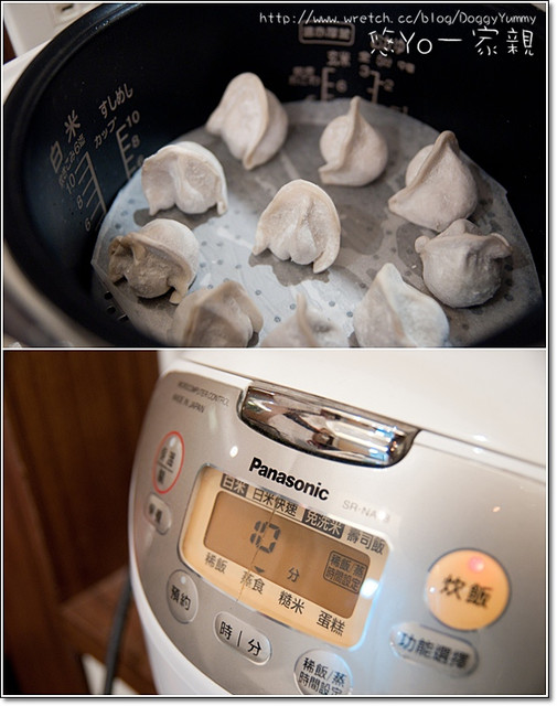 原來也可以用電鍋蒸餃喔