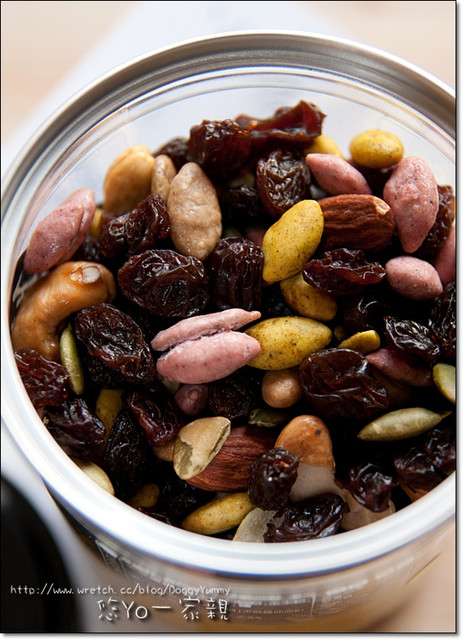 裡頭有香甜的葡萄乾、酥脆的腰果和杏仁果~