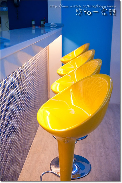 圓渾亮黃色的高腳椅整個非常亮眼~