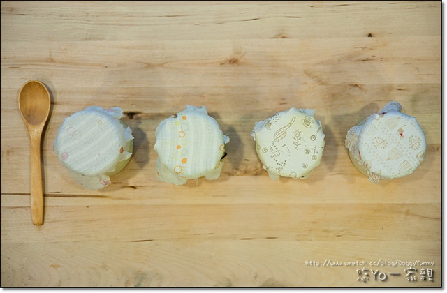 每款口味的瓶口都套上不同樣式的花布~