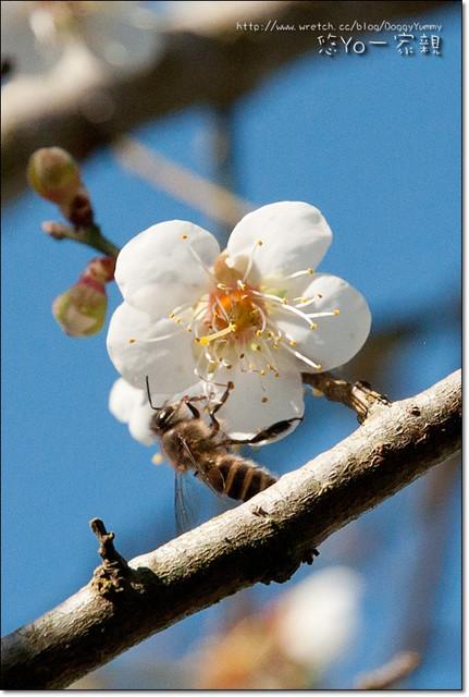 盛開的梅花林裡當然少不了辛勤採蜜的蜜蜂~