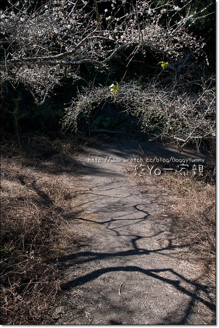 梅枝透過陽光倒影在小徑上表現出另類的光影之美~