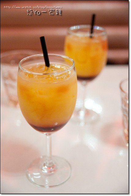 底層紅色的部分是草莓甜酒上層就是柳橙汁~