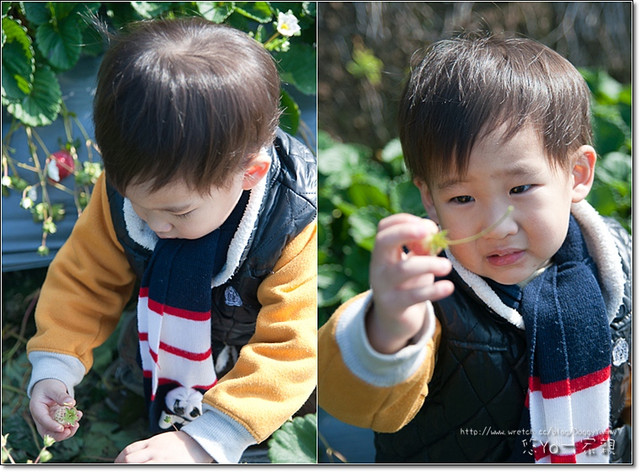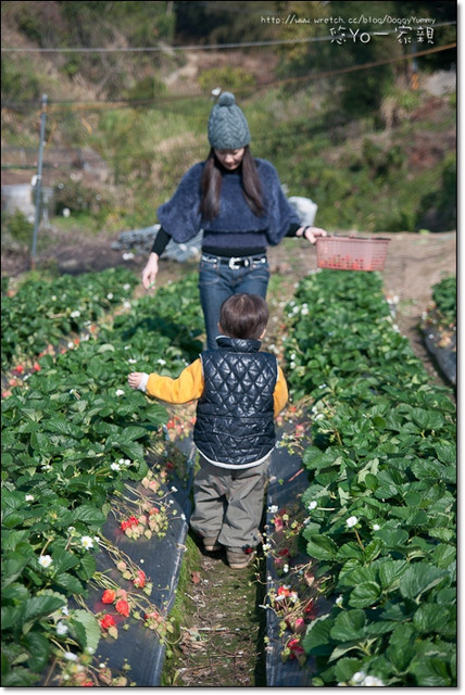 爬了一小段山坡,終於來到佳樂的草莓園~