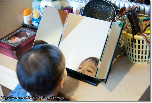 而好奇寶寶YoYo也跑來YYM的梳妝台照鏡子 XD