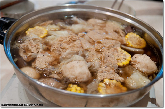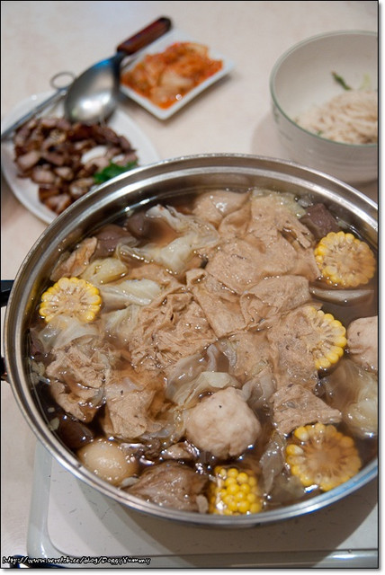 YYB加了豆皮、鴨血、高麗菜、玉米、花枝丸和火鍋料等等~