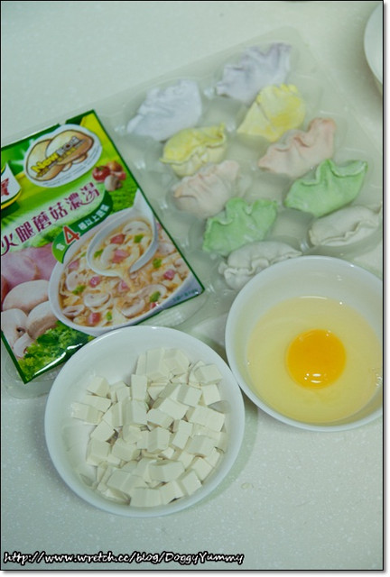 YYB就用火腿磨菇濃湯搭配五色水餃,煮成營養又好吃的五色湯餃~