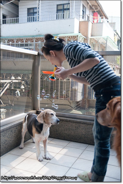 那張狗狗臭頭上的泡泡拍的好讚!小虎喜歡