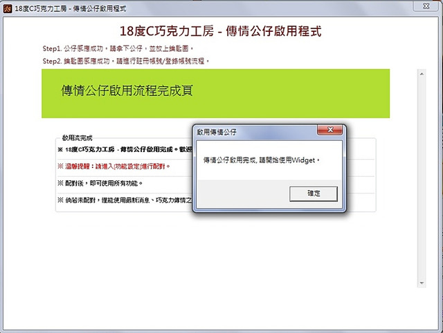 就會自動跳出提醒視窗"將公仔放在感應底座上"