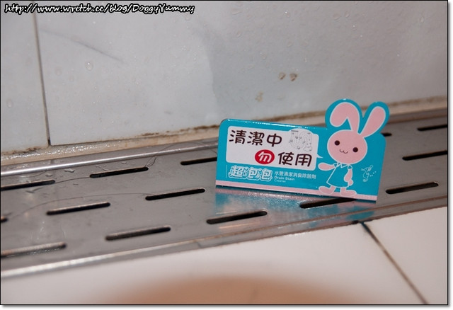 再將毛寶兔小叮嚀桌卡放置於排水口旁~