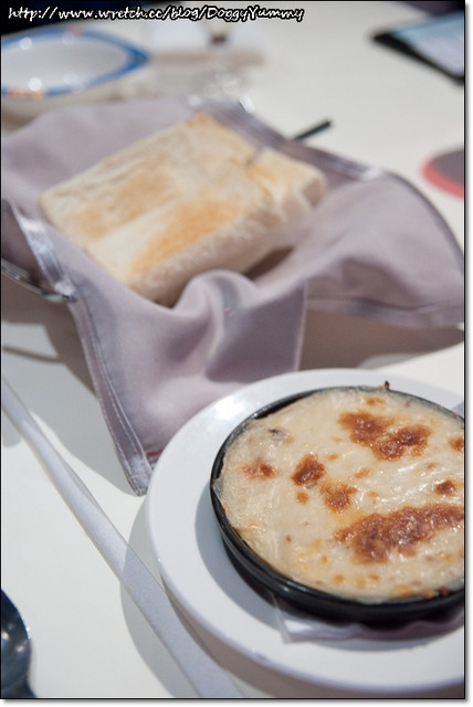 將焗烤蘑菇抹在香酥的方塊麵包一同享用~