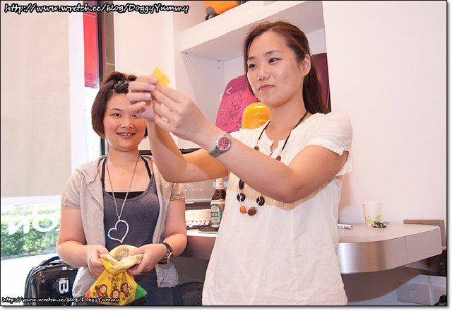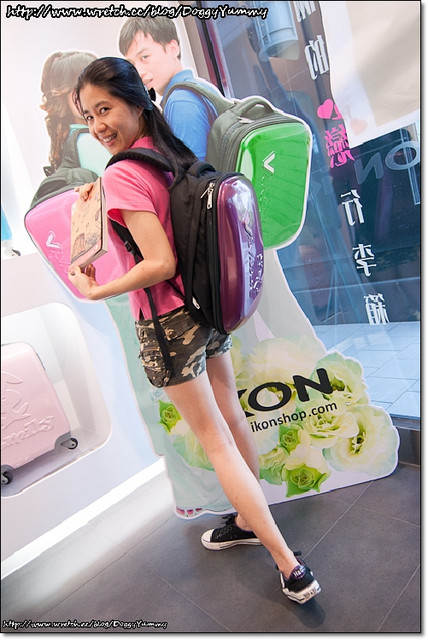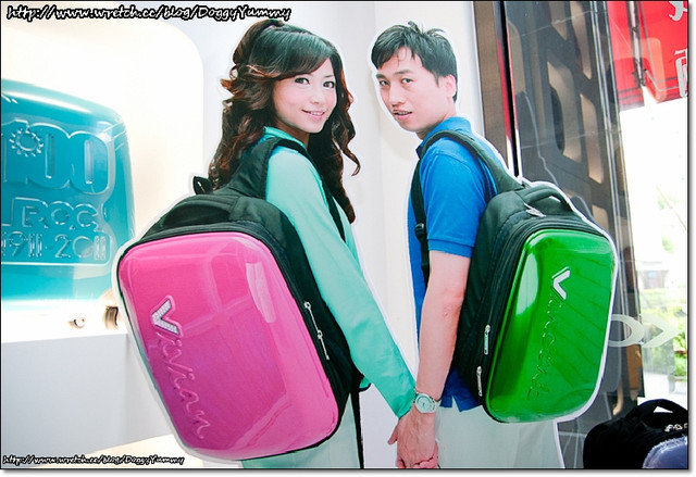 簽名會結束後小貓還拿起一款粉紅色的後背包試背~
