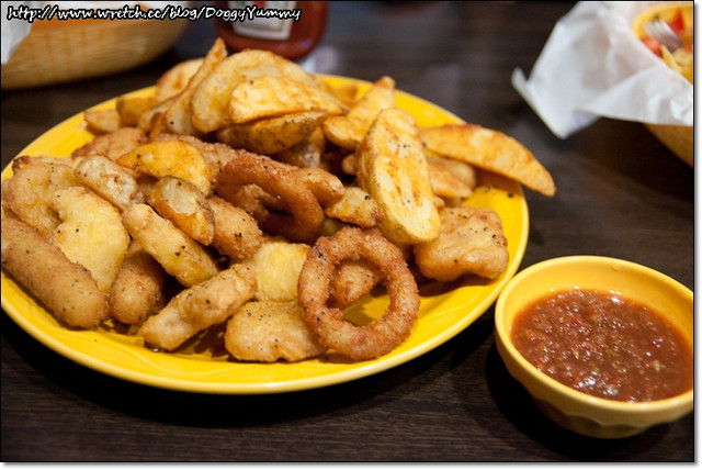 裡頭的內容物相當豐富,有鱈魚、起司條、帶皮的薯條、玉米酥、洋蔥圈和雞塊等等~
