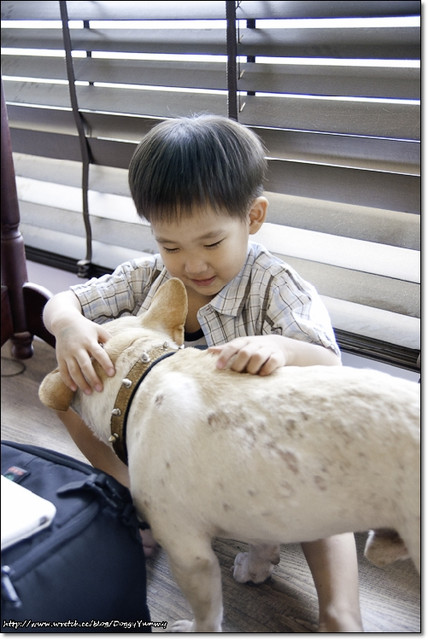 而怕狗狗的小山藥出門前還特別換穿了長褲,怕狗狗抓他~ XD