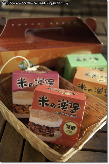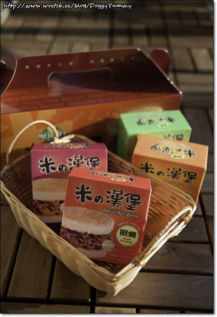 這次體驗的口味共有:咖哩豬米堡、照燒豬米堡、照燒雞米堡、牛蒡豬米堡、黑胡椒豬米堡、香菇素食米堡