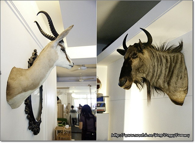 店內的牆壁上還掛有各種非洲動物的頭像標本~