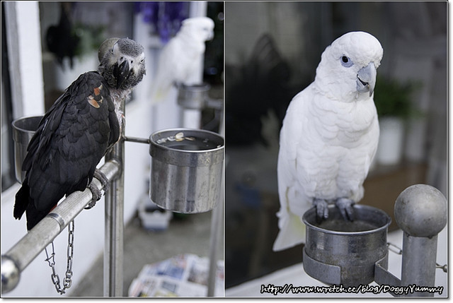 很俗辣的YoYo看到兩隻大鸚鵡不敢靠近只敢遠遠的偷偷看~