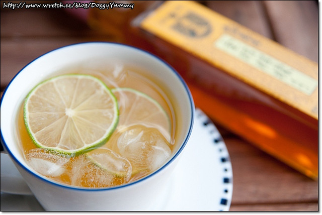 YYB加水稀釋攪拌均勻後又丟了幾塊冰塊和檸檬切片~