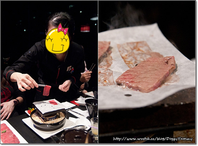 品嚐前直接將肉片放置於300℃岩板微炙至5分熟~
