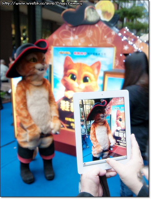 大家都搶著跟鞋貓人型玩偶一起合照~