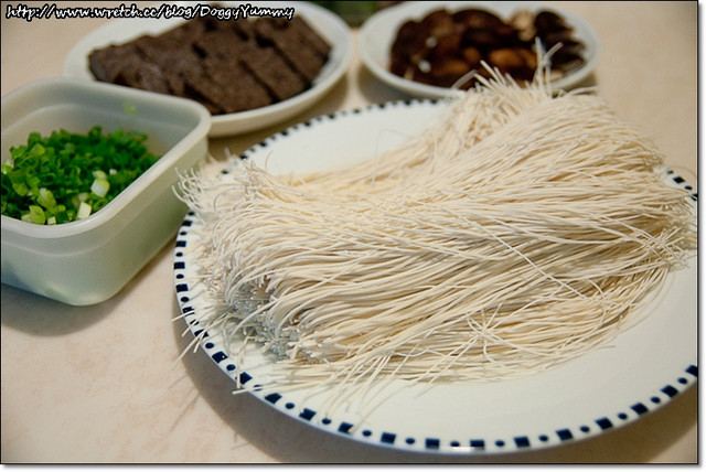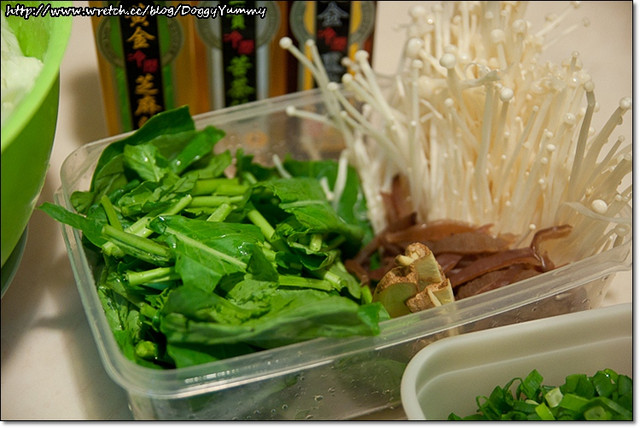 YYB準備了烏骨雞半隻、乾香菇、金針菇、豬血糕和高麗菜等食材~