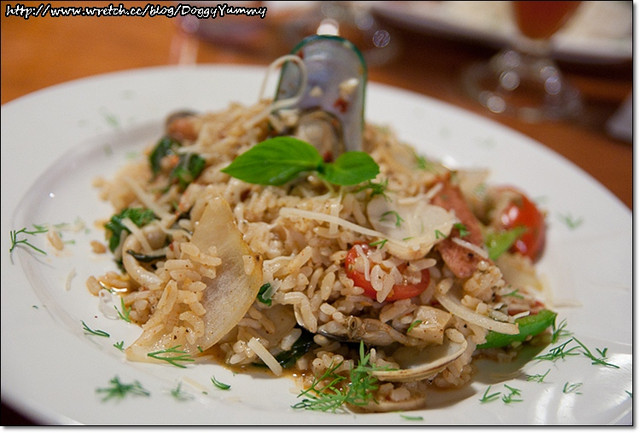 份量頗大的義大利風味海鮮燉飯,搭配脆口的德式臘腸、綜合海鮮及豐富的當令蔬菜~