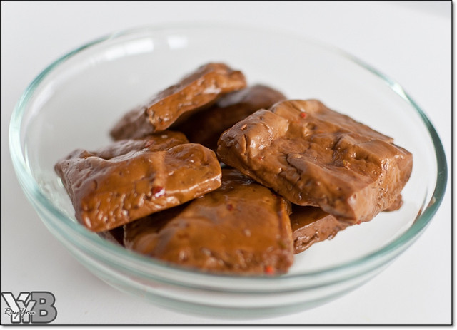 將小巧的三角豆乾先炸再用花椒拌炒~