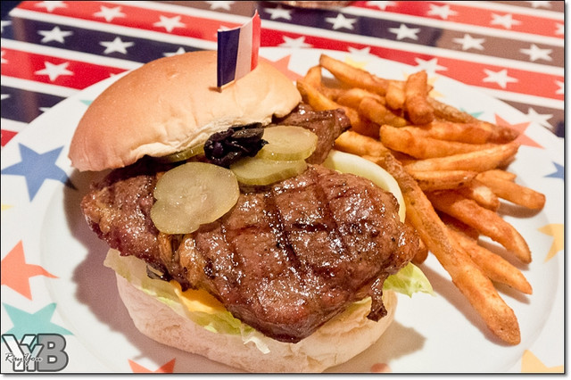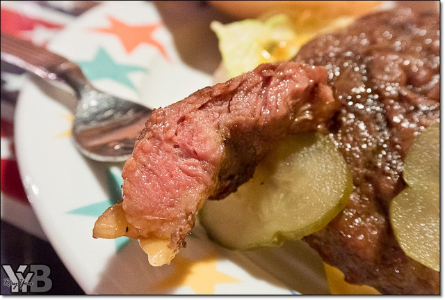 厚實的肋眼牛排就直接夾在漢堡堡的中間,真的很犯規 XD