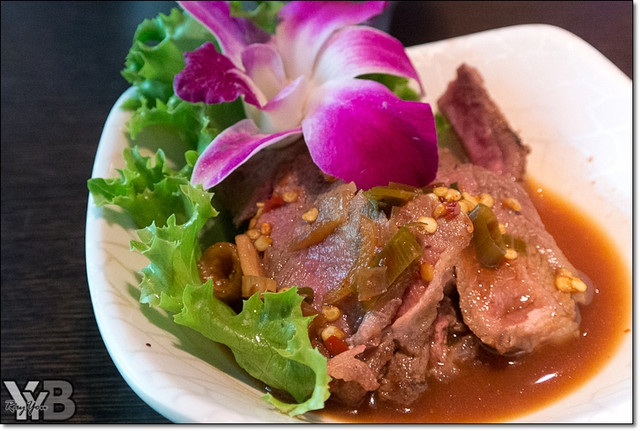 將牛小排料理到七分熟再搭配酸辣的泰式sauce~