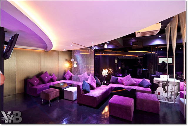 Lounge bar 內昏暗的燈光搭配著粉紫色的舒適沙發~