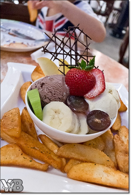 熱騰騰炙熱的香脆黃金大薯霸,竟然搭配超沁涼的冰淇淋~