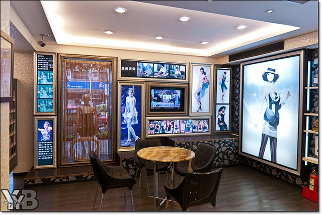 進門後兩邊牆面掛滿了明星代言的華麗款式