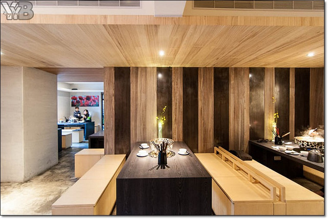 以原木和裸露的水泥牆面表現出獨特的空間對比~