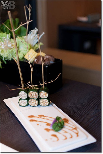 由新鮮菠菜層層包覆豆皮和白芝麻醬~