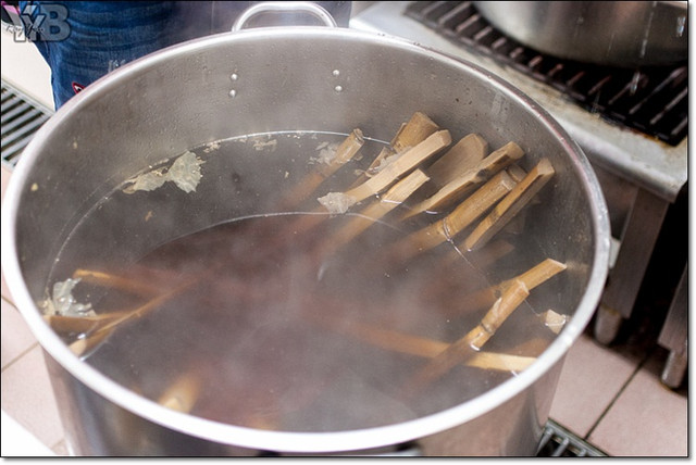 超熱心年輕老闆果然立馬帶歪歪逼進入深宮廚房一窺高湯的熬煮過程~