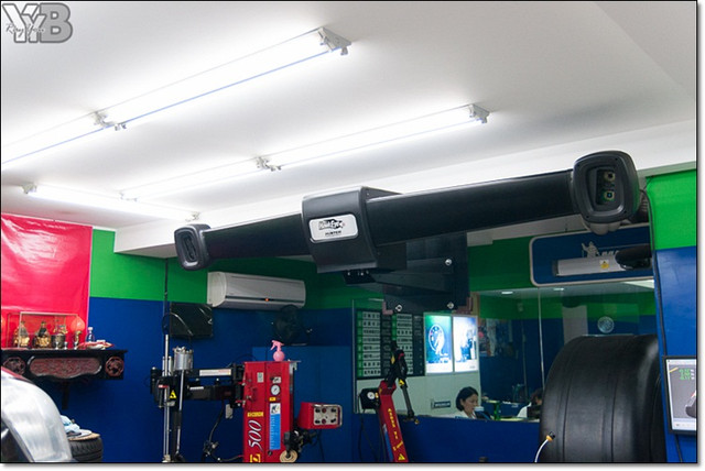 這機器好厲害,把輪胎放上去旋轉一下就知道要配多重的鉛塊~